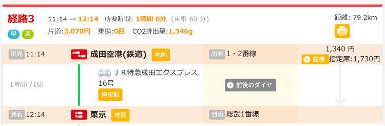 1. 나리타 공항(成田空港) → 도쿄(東京): 3,070엔